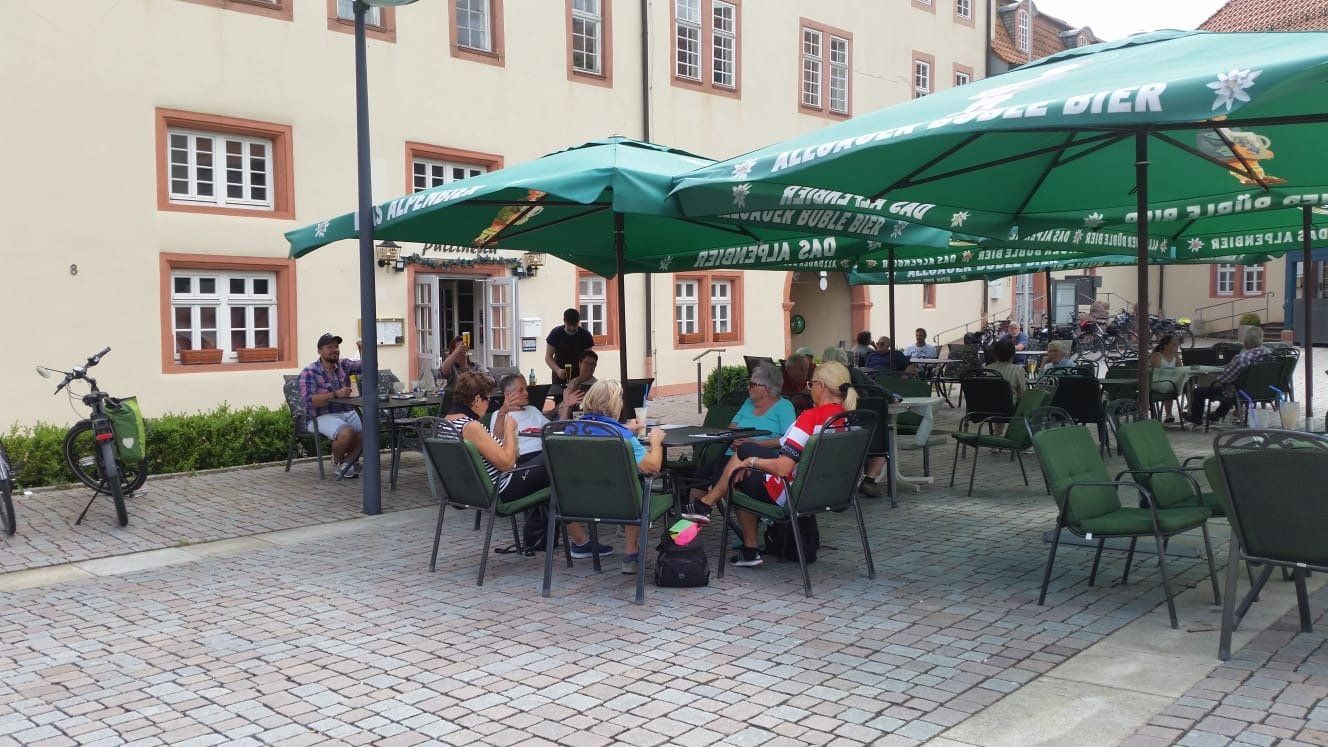 Stadtführung in Schlitz „Wahrheit oder Lüge“ Zu einer Stadtführung ungewöhnlicher Art fuhren am 6. September 2025 17 Interessenten aus Gersfeld nach Schlitz. In der „Burgenstadt“ lernten wir sowohl die vier Burgen, als auch Einiges aus der Geschichte dieser Stadt kennen. Aufgelockert durch die Erzählung von Anekdoten und historischen Begebenheiten, leitete uns der Stadtführer zu den Burgen und Toren, zur Kirche und den Marktbrunnen. Unterwegs mussten wir den jeweiligen Wahrheitsgehalt seiner Geschichten beurteilen und wurden belohnt, wenn wir eine Lüge erkannten. Zum Ende der Führung wurde das „Schlitzohr“ des Tages mit einem kleinen Präsent geehrt. Die Fahrt auf den Vorderturm, in der Adventszeit bekannt als die größte Weihnachtskerze der Welt, war ein Highlight dieses Nachmittags. Aus luftiger Höhe konnten wir den Umfang des Burgenrings mit seinen historischen Gebäuden erfassen. Den Abschluss fand unser Ausflug in einem Haus aus dem 16. Jahrhundert, wo wir noch einkehrten und den Tag ausklingen ließen. Teilnehmer: 17 Personen Text: Marietta Preiß-Schäfer Fotos: Marietta Preiß-Schäfer und Thomas Niedling