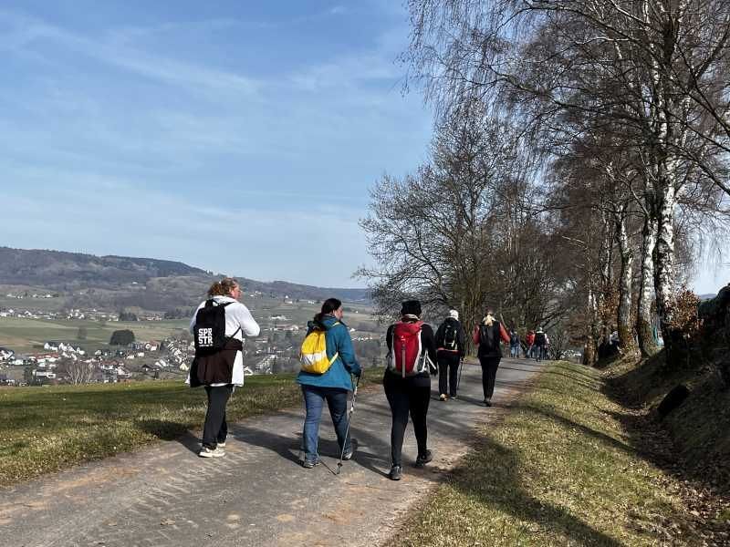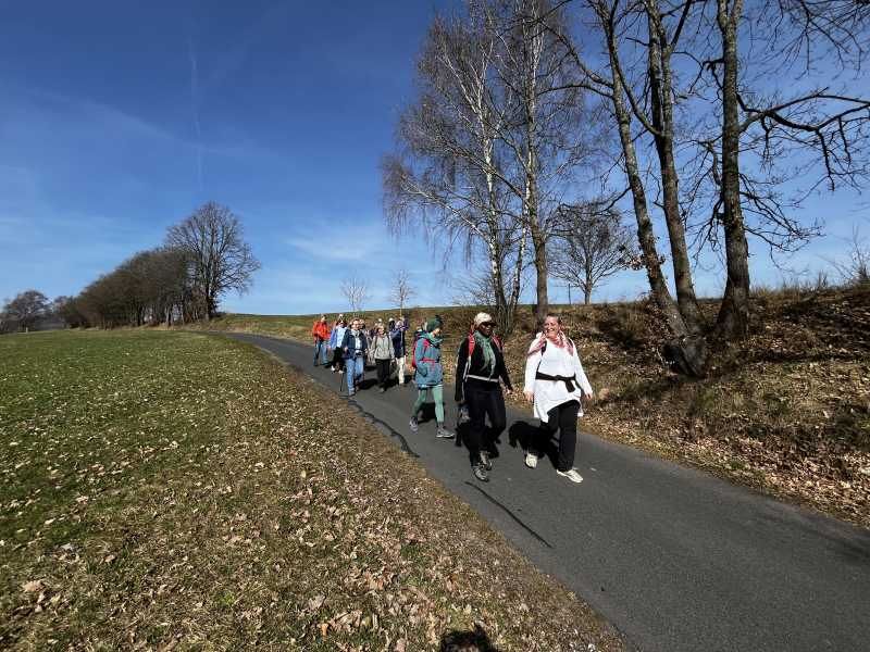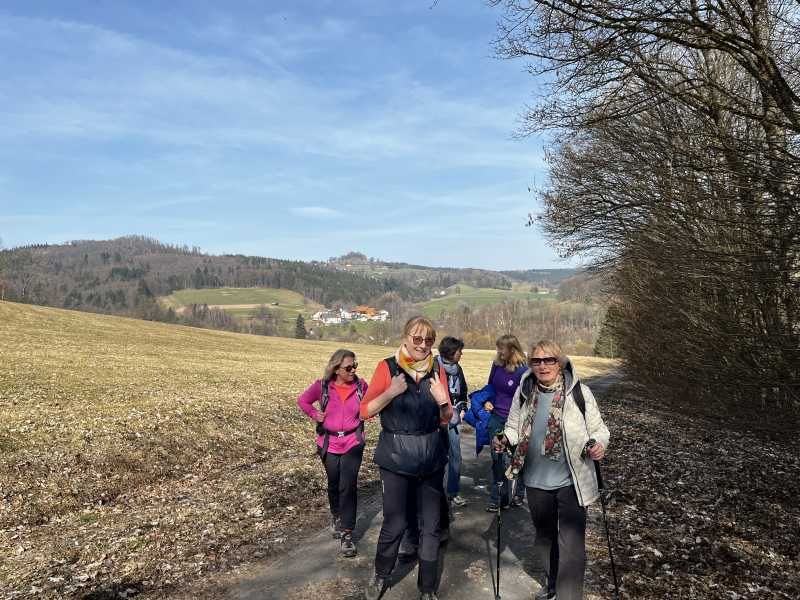 Kräppelwanderung am Sonntag 22. März 2026 Nachdem wir uns am Sonntag, den 22.02.2026, am Gersfelder Marktplatz getroffen hatten wanderten wir durch den Schloßpark über den Komberg nach Schachen und weiter nach Maiersbach. Wir waren 11 Wanderer und unterwegs gesellten sich noch 3 weitere Wanderer dazu. Mit 14 Wanderern trafen wir gegen 14:30 Uhr im Gasthof Erlengrund in Maiersbach ein. Unterwegs hatten wir Wind, Sturm und Regen zu überstehen. Der Schnee war schon überall weggetaut und Erle und Haselnuss haben sich schon auf Frühjahr eingestellt. Nach Maiersbach waren noch 11 zusätzliche Rhönklubberer mit den Autos gekommen, so dass wir insgesamt 25 Personen waren. Die Wirtin Ellen Goldbach erwartete uns schon und sie hatte wieder herrlich duftende Kräppel für uns gebacken. Bei Kaffee und Kräppel und lustiger Unterhaltung verging die Zeit wie im Fluge. Gegen 16:00 Uhr machten wir uns wieder auf den Heimweg. Das Wetter hatte sich nicht beruhigt und so wurden wir auch auf dem Heimweg nass. Ein gelungener Hutzelsonntag mit Regen und guten Kräppeln. Wanderstrecke: 7 km Wanderführerin: Susi Maul Bilder und Text: Maul Susi und Trittin Margit