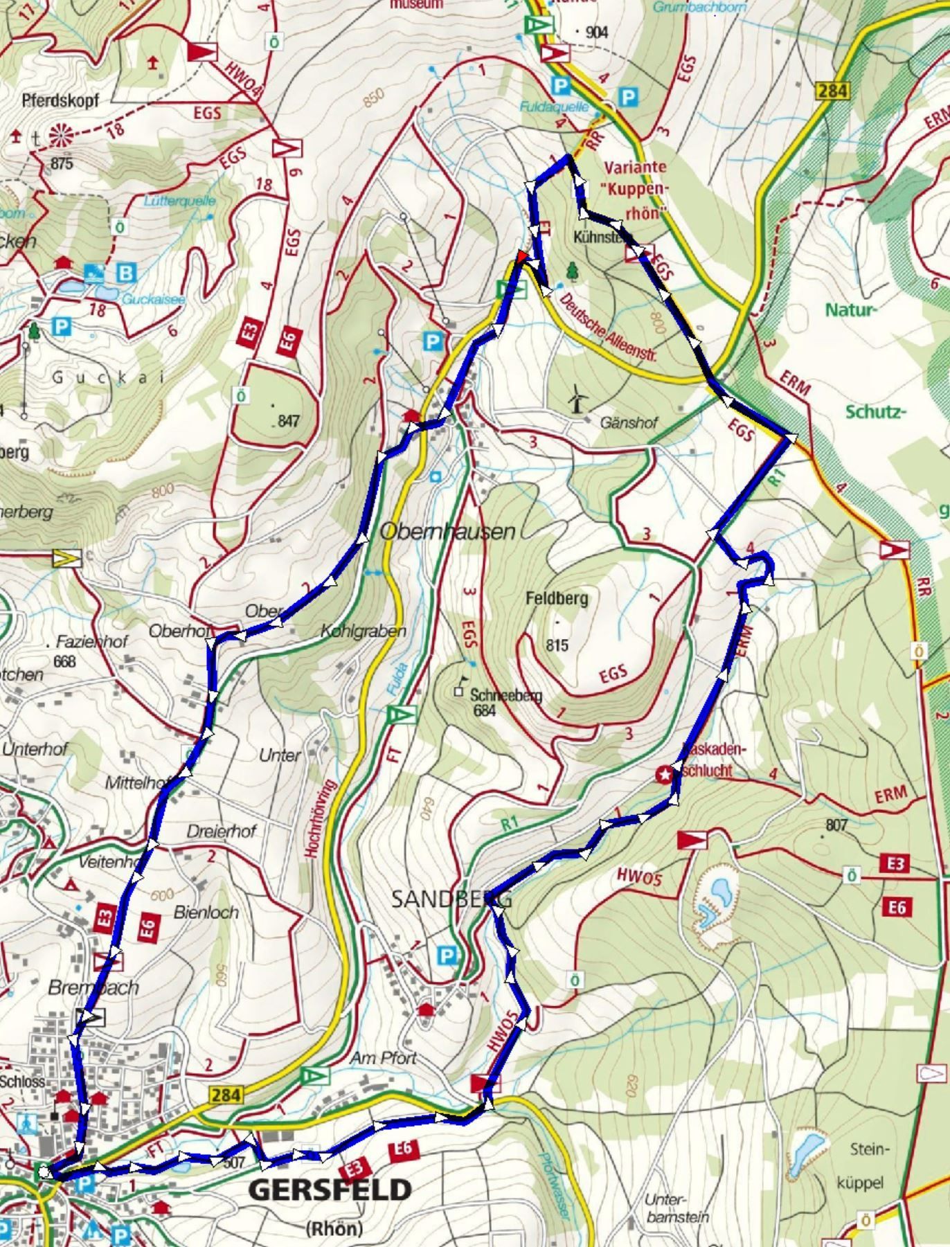 Gestärkt traten wir den Rückweg an. Bergab gingen wir auf der Sonnenseite nach Gersfeld zurück.