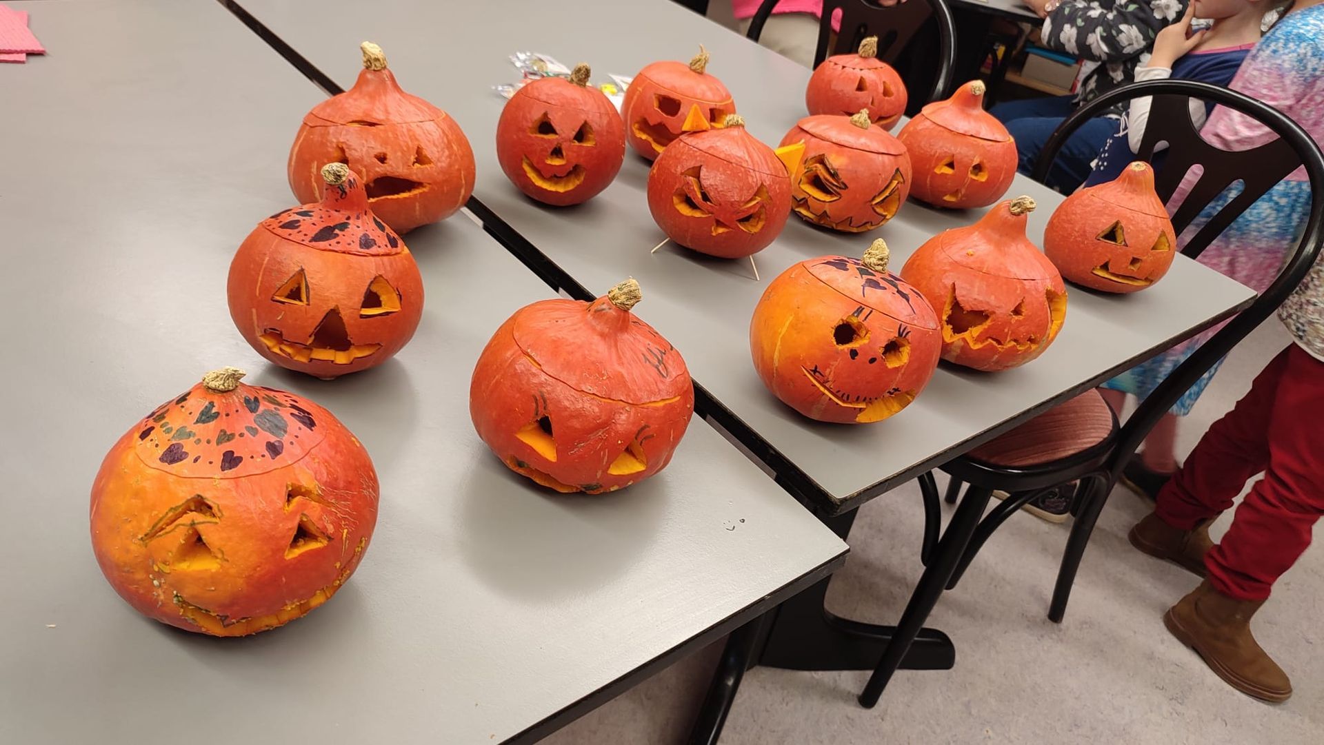 Gruselige aber auch fröhliche Gesichter sind dabei entstanden, so verschieden wie die Künstler selbst. Die Kinder verfügten über reichlich Geschick, sodass die Kürbisgesichter schneller geschnitzt waren als wir gedacht haben.