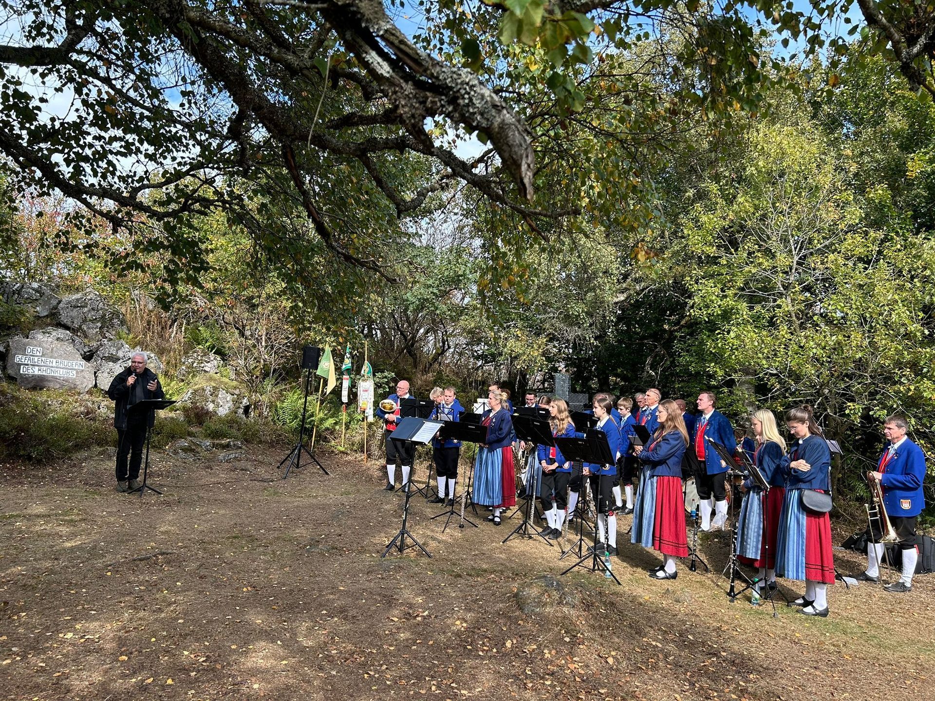 Wanderung in den Weinbergen von Hammelburg der „ältesten Weinstadt Frankens“ 28.09.2025 Um 10 Uhr trafen sich 23 Wein- und Wanderfreunde am EDEKA-Markt in Gersfeld, um wieder einen Ausflug ins schöne Frankenland zu unternehmen. Ziel waren die Weinberge oberhalb von Hammelburg der „ältesten Weinstadt Frankens“. Information: Erstmals urkundlich erwähnt wurde Hammelburg im Jahr 716 und gehört somit zu den 30 ältesten Städten Deutschlands. Es ist belegt, dass Hammelburg im Jahr 777 als „hamulo castellum“ an das Kloster Fulda überging, bereits Rebstöcke existierten und damit Trauben geerntet und Wein gekeltert wurde. Kaum waren wir in Hammelburg angekommen stiegen die letzten Hochnebel empor und wir konnten einen sagenhaften Blick auf Schloss Saaleck genießen. Zu Beginn begrüßte Jenny am Parkplatz oberhalb von Hammelburg am Ofenthaler Weg alle Teilnehmer und gab einen kurzen Abriss, was uns zu der heutigen Wanderung erwartet. Parallel bereiteten Stefan und Fabian Hüttner gemeinsam mit Ute und Steve Dupeire das legendäre rustikale Winzerfrühstück mit Weinverkostung und heimischen Apfelsaft vor. Noch während der Begrüßung klingelte Jennys Handy und Gertrud sprach in die Runde: „Das wird der Stefan sein, der sagt bestimmt, dass das Brot vergessen wurde…“ und es war Stefan und er sagte: „Weißt du was wir zu Hause vergessen haben?!?“; kurz gesagt: Es waren wirklich 3 Laib bestes Bauernbrot! Alle lachten 😊 - doch Stefan rettete gemeinsam mit Fabian unser Frühstück und sie kauften kurzerhand frisches Brot in Hammelburg ein. 😉Leider konnten wir uns nicht exakt an „Blumis“ Lösung halten, denn er sagte: „In der Not schmeckt die Wurscht auch ohne Brot“. 😉 Nach kurzer Wanderung vom Parkplatz aus erreichten wir das „terroir f“ von Hammelburg – einen der magischen Orte des Weinlands Franken – mit geschichtlichen Informationen zum Frankenwein und herrlicher Aussicht auf die Stadt Hammelburg. Was bedeutet eigentlich die Bezeichnung „terroir f“? – terroir = frz. Gegend, lat. Erde, f für Franken. An diesem wunderschönen Ort konnten wir uns das vorbereitete Winzerfrühstück mit frischem Brot und unter Sonnenschein und milden Herbsttemperaturen schmecken lassen. Anschließend starteten wir unsere Wanderung. Zunächst durch den Weinberg; ehe wir am Rand zum Kiefernwald den Startbereich von Paraglidern erreichten. An diesem Platz machten wir eine kurze Pause, genossen den tollen freien Blick auf die fränkische Saale und die mächtige Erdfunkstation unterhalb dieses Platzes. Zu unser aller Freude starteten auch genau zu diesem Zeitpunkt einige Paraglider von diesem Startplatz aus, so dass wir dies aus nächster Nähe beobachten konnten. Die weitere Wanderstrecke führte uns durch den angesprochenen Kiefernwald am Hammelberg vorbei an „geheimnisvollen Figuren“. „Der Philosoph“, das „tanzende Paar“ und „Amalberga“ heißen diese Figuren laut Beschreibung aus einem Flyer aus Hammelburg. Keiner weiß wie und woher sie kommen – Die Figuren sind aus Beton und das Gewicht wird auf teilweise 250 kg geschätzt. Spektakulär stehen diese lebensgroßen Figuren an Felsvorsprung und unmittelbar vor dem steilen Abgrund mit Blick in Richtung Hammelburg. Alles sehr rätselhaft – ja die Beschreibung mysteriös trifft es wohl am besten. Weiter ging es auf dem Rundweg zurück zum Ausgangsparkplatz. Da wir nach den absolvierten 5 km noch etwas Zeit bis zur Einkehr in dem reservierten Landgasthof zu Verfügung hatten, entschlossen wir uns einen Zwischenhalt an der „Weintenne des Weinguts Müller!“ einzulegen und die Möglichkeit für frischen fränkischen Federweiser, Wein oder einer Tasse Kaffee zu nutzen. Eingekehrt wurde zum gemeinsamen Abschluss im Landgasthof „Zum goldenen Kreuz“ in Untererthal – eine fränkische Gaststätte mit Tradition; aber auch hier suchen sie ab Januar 2026 einen Nachfolger. Durch Vorbestellung konnten wir leckere Speisen wie Schäufele mit Kloß, Schnitzel, Pfifferlinge, selbstgemachte Semmelknödel oder ähnliches mit Frankenwein oder zünftigen Bier genießen. Gegen 20:00 Uhr trafen wir wieder in Gersfeld ein, freuten uns, dass wir auch in diesem Jahr wieder Glück mit dem Wetter hatten und wieder ein anderes Stück Frankenland haben entdecken können. Besonders haben wir uns gefreut, dass wieder einige „neue“ Wein- und Wanderfreunde und unsere Freunde aus Malkes an der Weinbergwanderung teilgenommen haben. Text und Fotos: Jenny Hüttner