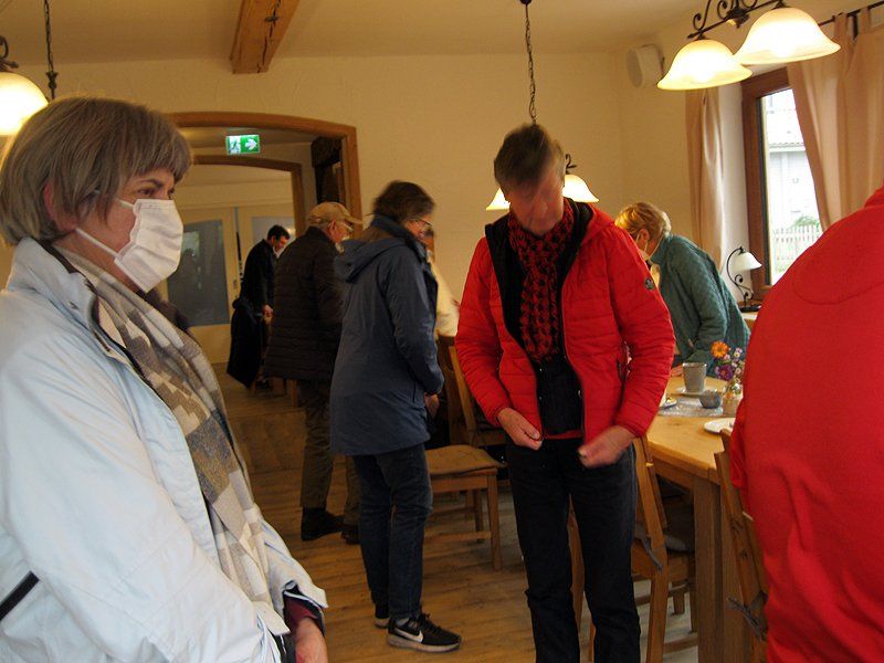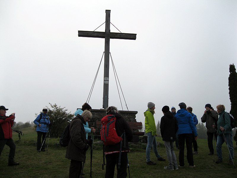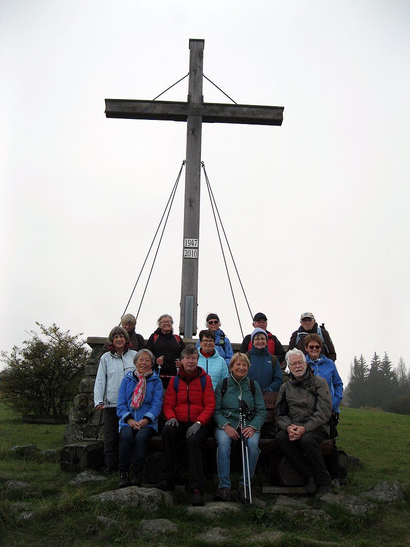 Seniorenwanderung Kreuzberg am 07. Oktober 2025 Am Gersfelder Marktplatz trafen sich um 14.00 Uhr 8 Wanderer zu der Seniorenwanderung Kreuzberg. Im Vorfeld hatten sich viele Interessierte wieder abgemeldet. Das Wetter war sehr wolkenverhangen und diesig. Wir fuhren zum Kreuzberg auf den Parkplatz. Hier waren wir in den Wolken. Nach einer kurzen Besichtigung der Kirche drehten wir eine kleine Runde bis zur Kreuzigungsgruppe. Treppab ging es zum Kloster. Dort kehrten wir ein. Alle waren guter Laune und genossen Bier, Kaffee, Käsebrot und Kuchen. Ein sehr schöner Ausflug trotz der mangelnden Sicht. Um 17.30 Uhr fuhren wir wieder nach Hause. Strecke: ca. 3 km Wanderführerin: Margit Trittin Text und Fotos: Margit Trittin