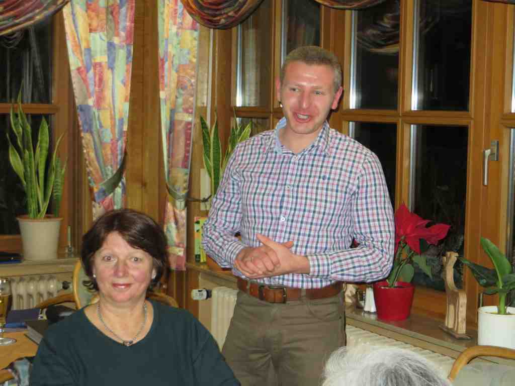 Wanderung in den Weinbergen von Hammelburg der „ältesten Weinstadt Frankens“ 28.09.2025 Um 10 Uhr trafen sich 23 Wein- und Wanderfreunde am EDEKA-Markt in Gersfeld, um wieder einen Ausflug ins schöne Frankenland zu unternehmen. Ziel waren die Weinberge oberhalb von Hammelburg der „ältesten Weinstadt Frankens“. Information: Erstmals urkundlich erwähnt wurde Hammelburg im Jahr 716 und gehört somit zu den 30 ältesten Städten Deutschlands. Es ist belegt, dass Hammelburg im Jahr 777 als „hamulo castellum“ an das Kloster Fulda überging, bereits Rebstöcke existierten und damit Trauben geerntet und Wein gekeltert wurde. Kaum waren wir in Hammelburg angekommen stiegen die letzten Hochnebel empor und wir konnten einen sagenhaften Blick auf Schloss Saaleck genießen. Zu Beginn begrüßte Jenny am Parkplatz oberhalb von Hammelburg am Ofenthaler Weg alle Teilnehmer und gab einen kurzen Abriss, was uns zu der heutigen Wanderung erwartet. Parallel bereiteten Stefan und Fabian Hüttner gemeinsam mit Ute und Steve Dupeire das legendäre rustikale Winzerfrühstück mit Weinverkostung und heimischen Apfelsaft vor. Noch während der Begrüßung klingelte Jennys Handy und Gertrud sprach in die Runde: „Das wird der Stefan sein, der sagt bestimmt, dass das Brot vergessen wurde…“ und es war Stefan und er sagte: „Weißt du was wir zu Hause vergessen haben?!?“; kurz gesagt: Es waren wirklich 3 Laib bestes Bauernbrot! Alle lachten 😊 - doch Stefan rettete gemeinsam mit Fabian unser Frühstück und sie kauften kurzerhand frisches Brot in Hammelburg ein. 😉Leider konnten wir uns nicht exakt an „Blumis“ Lösung halten, denn er sagte: „In der Not schmeckt die Wurscht auch ohne Brot“. 😉 Nach kurzer Wanderung vom Parkplatz aus erreichten wir das „terroir f“ von Hammelburg – einen der magischen Orte des Weinlands Franken – mit geschichtlichen Informationen zum Frankenwein und herrlicher Aussicht auf die Stadt Hammelburg. Was bedeutet eigentlich die Bezeichnung „terroir f“? – terroir = frz. Gegend, lat. Erde, f für Franken. An diesem wunderschönen Ort konnten wir uns das vorbereitete Winzerfrühstück mit frischem Brot und unter Sonnenschein und milden Herbsttemperaturen schmecken lassen. Anschließend starteten wir unsere Wanderung. Zunächst durch den Weinberg; ehe wir am Rand zum Kiefernwald den Startbereich von Paraglidern erreichten. An diesem Platz machten wir eine kurze Pause, genossen den tollen freien Blick auf die fränkische Saale und die mächtige Erdfunkstation unterhalb dieses Platzes. Zu unser aller Freude starteten auch genau zu diesem Zeitpunkt einige Paraglider von diesem Startplatz aus, so dass wir dies aus nächster Nähe beobachten konnten. Die weitere Wanderstrecke führte uns durch den angesprochenen Kiefernwald am Hammelberg vorbei an „geheimnisvollen Figuren“. „Der Philosoph“, das „tanzende Paar“ und „Amalberga“ heißen diese Figuren laut Beschreibung aus einem Flyer aus Hammelburg. Keiner weiß wie und woher sie kommen – Die Figuren sind aus Beton und das Gewicht wird auf teilweise 250 kg geschätzt. Spektakulär stehen diese lebensgroßen Figuren an Felsvorsprung und unmittelbar vor dem steilen Abgrund mit Blick in Richtung Hammelburg. Alles sehr rätselhaft – ja die Beschreibung mysteriös trifft es wohl am besten. Weiter ging es auf dem Rundweg zurück zum Ausgangsparkplatz. Da wir nach den absolvierten 5 km noch etwas Zeit bis zur Einkehr in dem reservierten Landgasthof zu Verfügung hatten, entschlossen wir uns einen Zwischenhalt an der „Weintenne des Weinguts Müller!“ einzulegen und die Möglichkeit für frischen fränkischen Federweiser, Wein oder einer Tasse Kaffee zu nutzen. Eingekehrt wurde zum gemeinsamen Abschluss im Landgasthof „Zum goldenen Kreuz“ in Untererthal – eine fränkische Gaststätte mit Tradition; aber auch hier suchen sie ab Januar 2026 einen Nachfolger. Durch Vorbestellung konnten wir leckere Speisen wie Schäufele mit Kloß, Schnitzel, Pfifferlinge, selbstgemachte Semmelknödel oder ähnliches mit Frankenwein oder zünftigen Bier genießen. Gegen 20:00 Uhr trafen wir wieder in Gersfeld ein, freuten uns, dass wir auch in diesem Jahr wieder Glück mit dem Wetter hatten und wieder ein anderes Stück Frankenland haben entdecken können. Besonders haben wir uns gefreut, dass wieder einige „neue“ Wein- und Wanderfreunde und unsere Freunde aus Malkes an der Weinbergwanderung teilgenommen haben. Text und Fotos: Jenny Hüttner