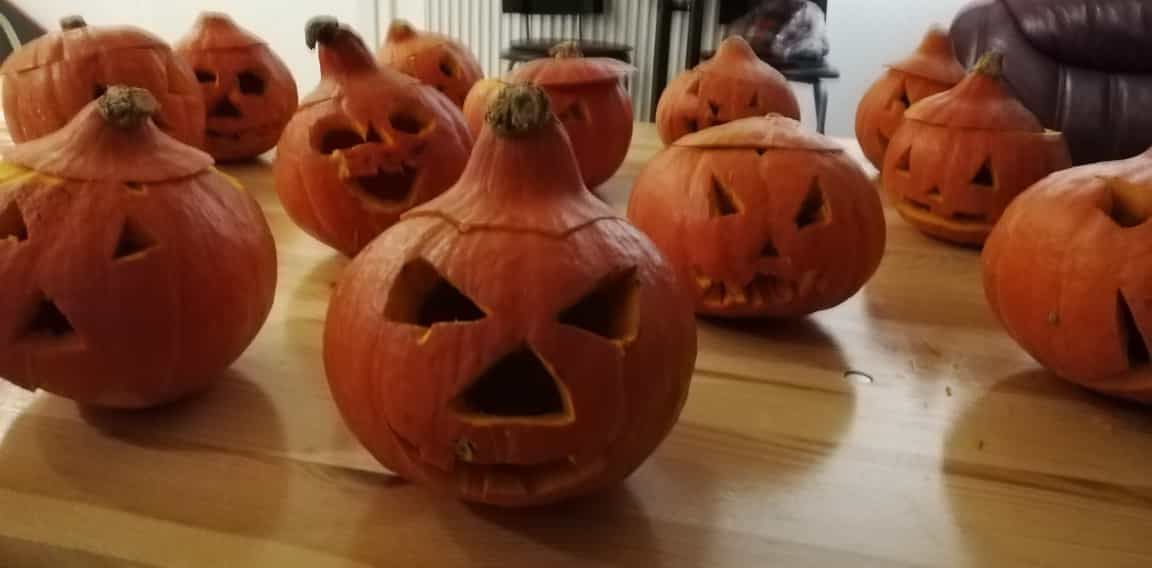 Am Montag 30.10.2023 trafen sich viele Kinder und Eltern in der Guten Stube, um mit Andrea und Sabrina Kürbisse zu schnitzen.