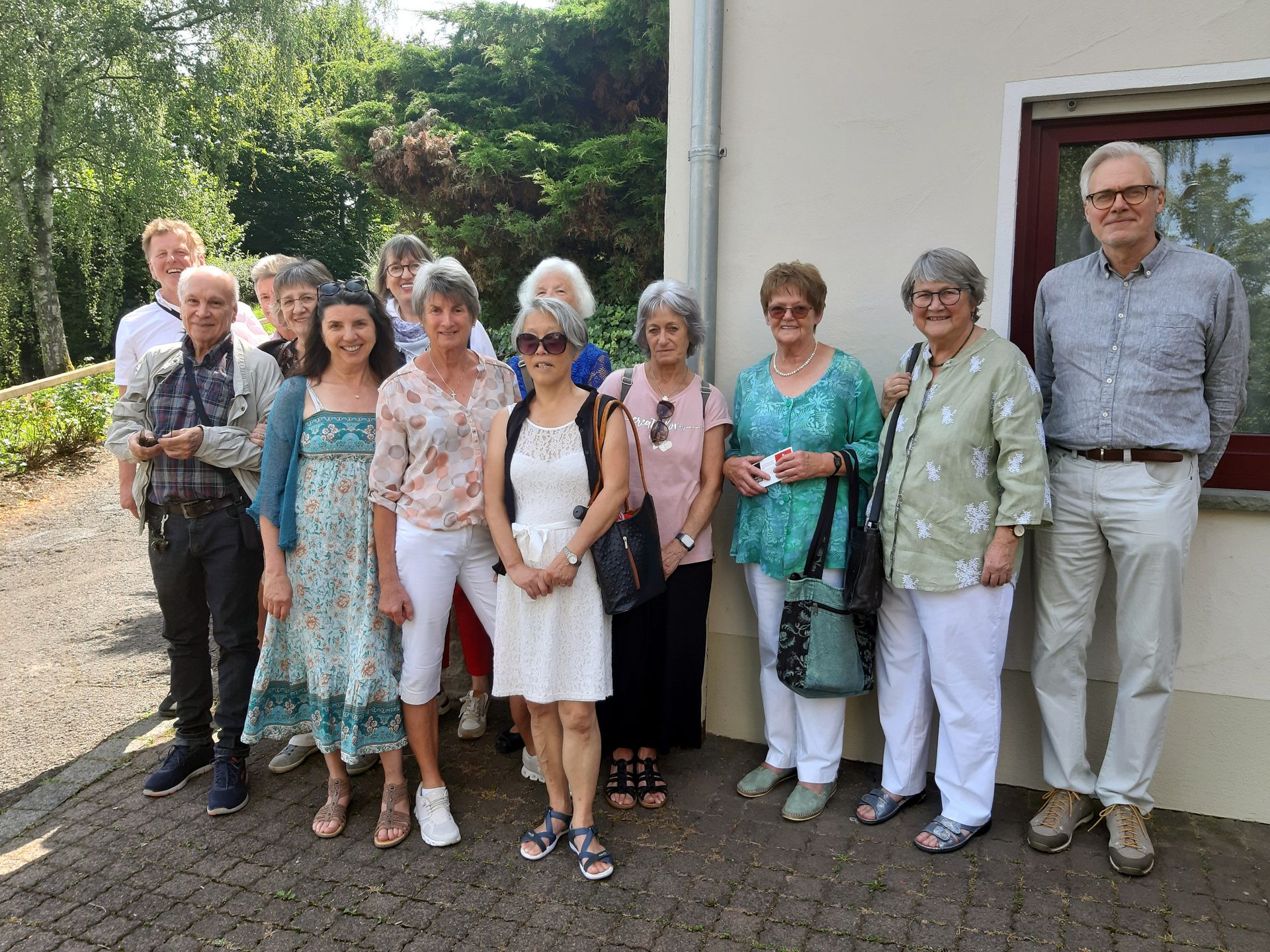 Stadtführung in Schlitz „Wahrheit oder Lüge“ Zu einer Stadtführung ungewöhnlicher Art fuhren am 6. September 2025 17 Interessenten aus Gersfeld nach Schlitz. In der „Burgenstadt“ lernten wir sowohl die vier Burgen, als auch Einiges aus der Geschichte dieser Stadt kennen. Aufgelockert durch die Erzählung von Anekdoten und historischen Begebenheiten, leitete uns der Stadtführer zu den Burgen und Toren, zur Kirche und den Marktbrunnen. Unterwegs mussten wir den jeweiligen Wahrheitsgehalt seiner Geschichten beurteilen und wurden belohnt, wenn wir eine Lüge erkannten. Zum Ende der Führung wurde das „Schlitzohr“ des Tages mit einem kleinen Präsent geehrt. Die Fahrt auf den Vorderturm, in der Adventszeit bekannt als die größte Weihnachtskerze der Welt, war ein Highlight dieses Nachmittags. Aus luftiger Höhe konnten wir den Umfang des Burgenrings mit seinen historischen Gebäuden erfassen. Den Abschluss fand unser Ausflug in einem Haus aus dem 16. Jahrhundert, wo wir noch einkehrten und den Tag ausklingen ließen. Teilnehmer: 17 Personen Text: Marietta Preiß-Schäfer Fotos: Marietta Preiß-Schäfer und Thomas Niedling