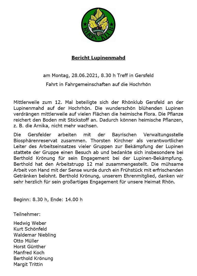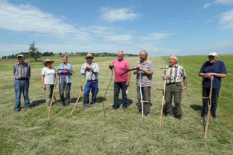 Die Geehrten: Von links: Erika Schleicher 25 Jahre Mitglied, Brigitte Müller 50 Jahre Mitglied, Peter Reuter 40 Jahre Mitglied, Otto Müller 50 Jahre Mitglied, Edeltraud Illichmann 40 Jahre Mitglied, Renate Romeis 70 Jahre Mitglied, Horst und Cornelia Günther beide 50 Jahre Mitglied, Margit Trittin, 1. Vorsitzende Sommer- und Grillfest am 15. August 2025 Das diesjährige Grillfest fand wieder großen Anklang. Bei herrlichem Sommerwetter fanden sich 50 Vereinsmitglieder ein. Die 1. Vorsitzende Margit Trittin begrüßte die Gäste, u. a. auch Bürgermeister Dr. Steffen Korell. Marietta Preiß-Schäfer hatte mit ihrem Team die Vorbereitungen für das Fest getroffen. Sie hieß alle herzlich Willkommen. Die Tische waren mit Sommerblumen dekoriert. Viele Vereinsmitglieder hatten Salate, Dips und Nachtische für das Fest vorbereitet und mitgebracht. Für die musikalische Umrahmung sorgte Sabine Penzel-Schell. Rhöner Lieder wurden gesungen. Als Grillmeister stand uns in diesem Jahr Harald Hanka zur Verfügung. Der Rhönklub Zweigverein Gersfeld ehrte seine langjährigen Mitglieder. Für 25 Jahre Mitgliedschaft wurden Erika Schleicher, für 40 Jahre Mitgliedschaft Peter Reuter und Edeltraud Illichmann geehrt. Mitglied seit 50 Jahren sind Brigitte und Otto Müller sowie Cornelia und Horst Günther. Die längste Zeit der Mitgliedschaft in diesem Jahr wies Renate Romeis auf. Sie ist seit 70 Jahren Mitglied im Rhönklub Zweigverein Gersfeld. Ein gelungenes Fest mit vielen unterhaltsamen Gesprächen klang am Abend bei Sonnenuntergang aus. Bericht: Margit Trittin Bilder: Georg Fischer, CC BY-SA 3.0