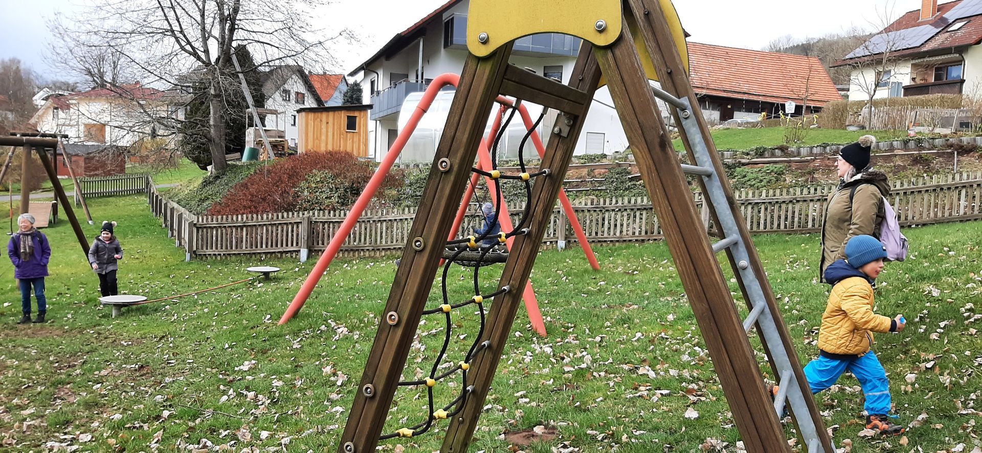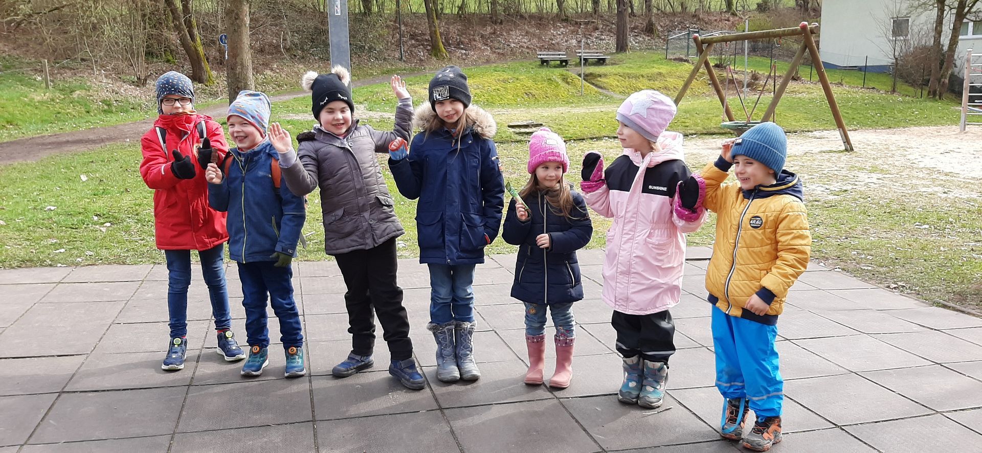 Am Samstag, 23.03.2024 trafen sich 11 Kinder am Spielplatz in Gersfeld um auf Ostereiersuche zu gehen (manche wollten nicht aufs Foto).