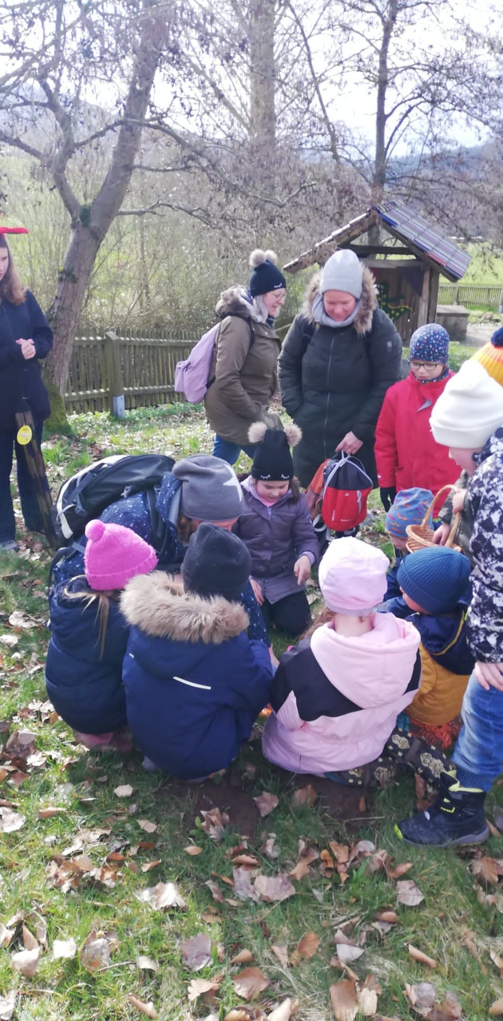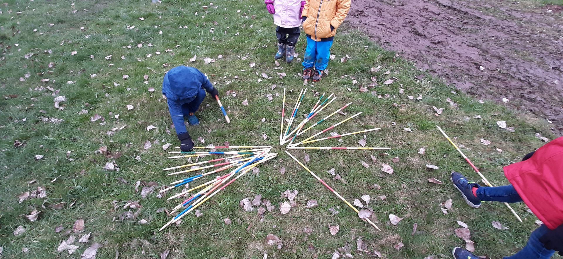 Im Anschluss machten wir noch einen Ostereierlauf, bei dem wir uns gegenseitig anfeuerten. Sogar beim abschließenden Riesenmikado waren einige noch voll konzentriert. Als der plötzliche Schneefall einsetze, wanderten wir wieder zurück nach Gersfeld.