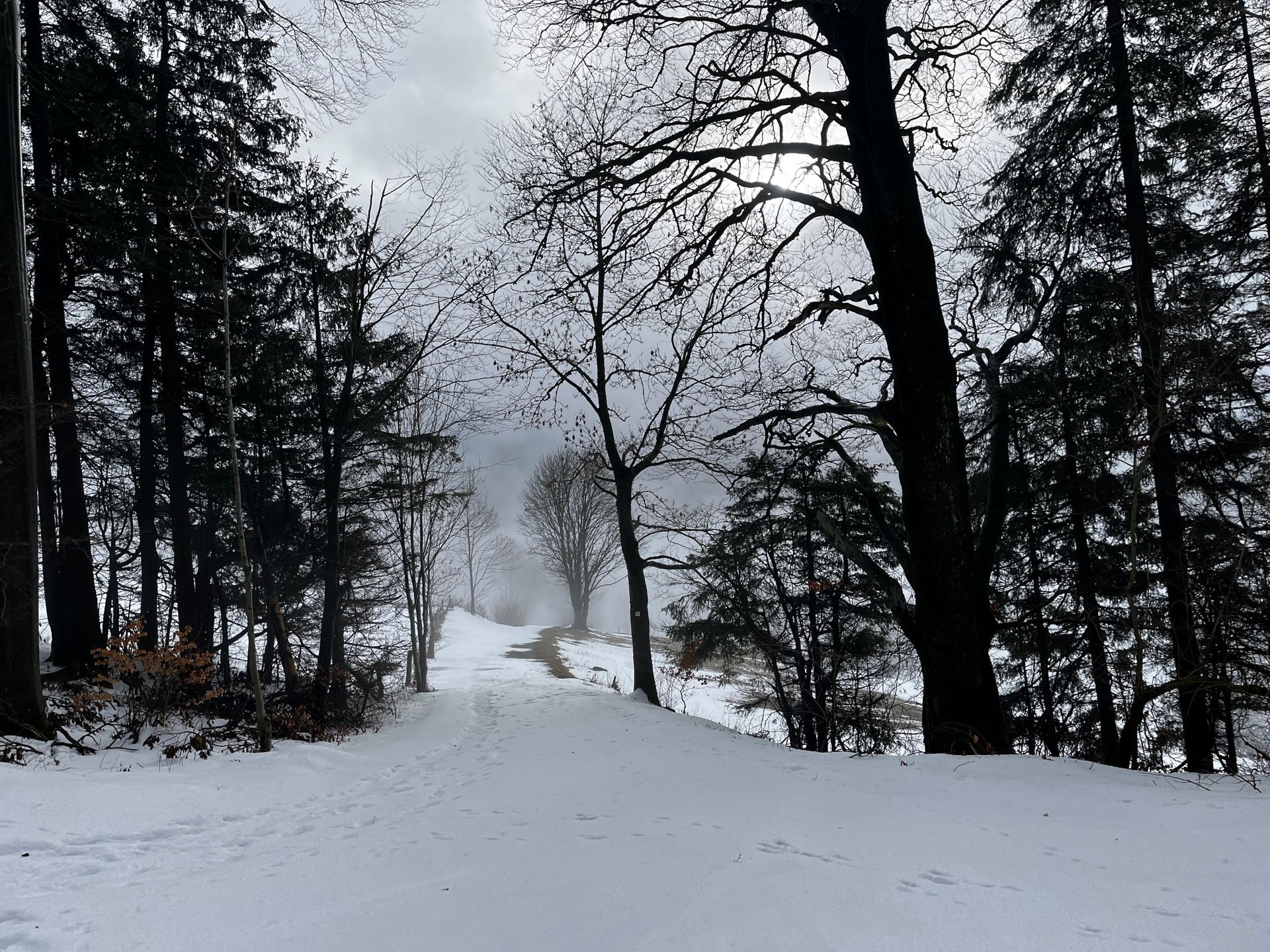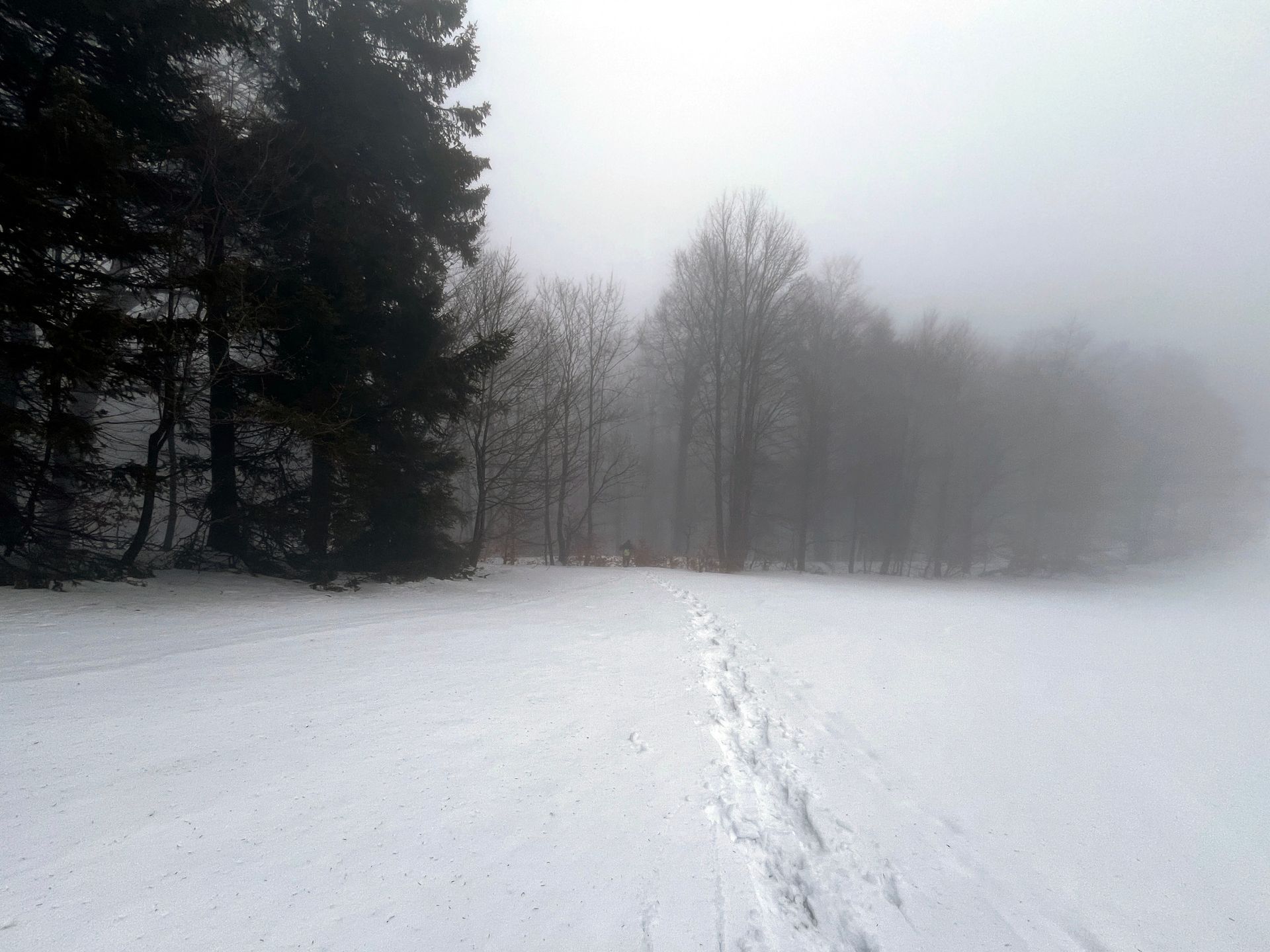 Doch leider hatten wir rund um Gersfeld einen Nebeltag am 7. Februar 2026 und die Temperatur zeigte +3° C an. Also stand im Mittelpunkt mehr das Erlebnis mit Schneeschuhen unterwegs zu sein und nicht die vielleicht grandiose Ausschicht am Simmelsbergplateau im Vordergrund.