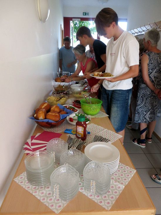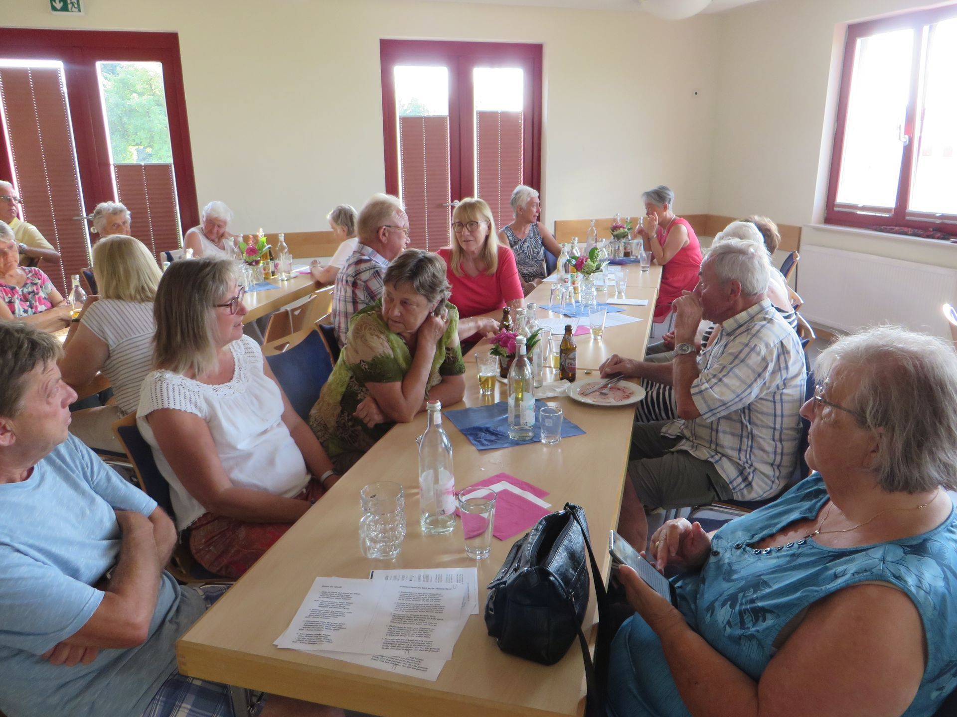 Die 1. Vorsitzende Margit Trittin begrüßte die Gäste, u. a. auch Bürgermeister Dr. Steffen Korell. Marietta Preiß-Schäfer hatte mit ihrem Team die Vorbereitungen für das Fest getroffen. Sie hieß alle herzlich Willkommen. Die Tische waren mit Sommerblumen dekoriert. Viele Vereinsmitglieder hatten Salate, Dips und Nachtische für das Fest vorbereitet und mitgebracht.