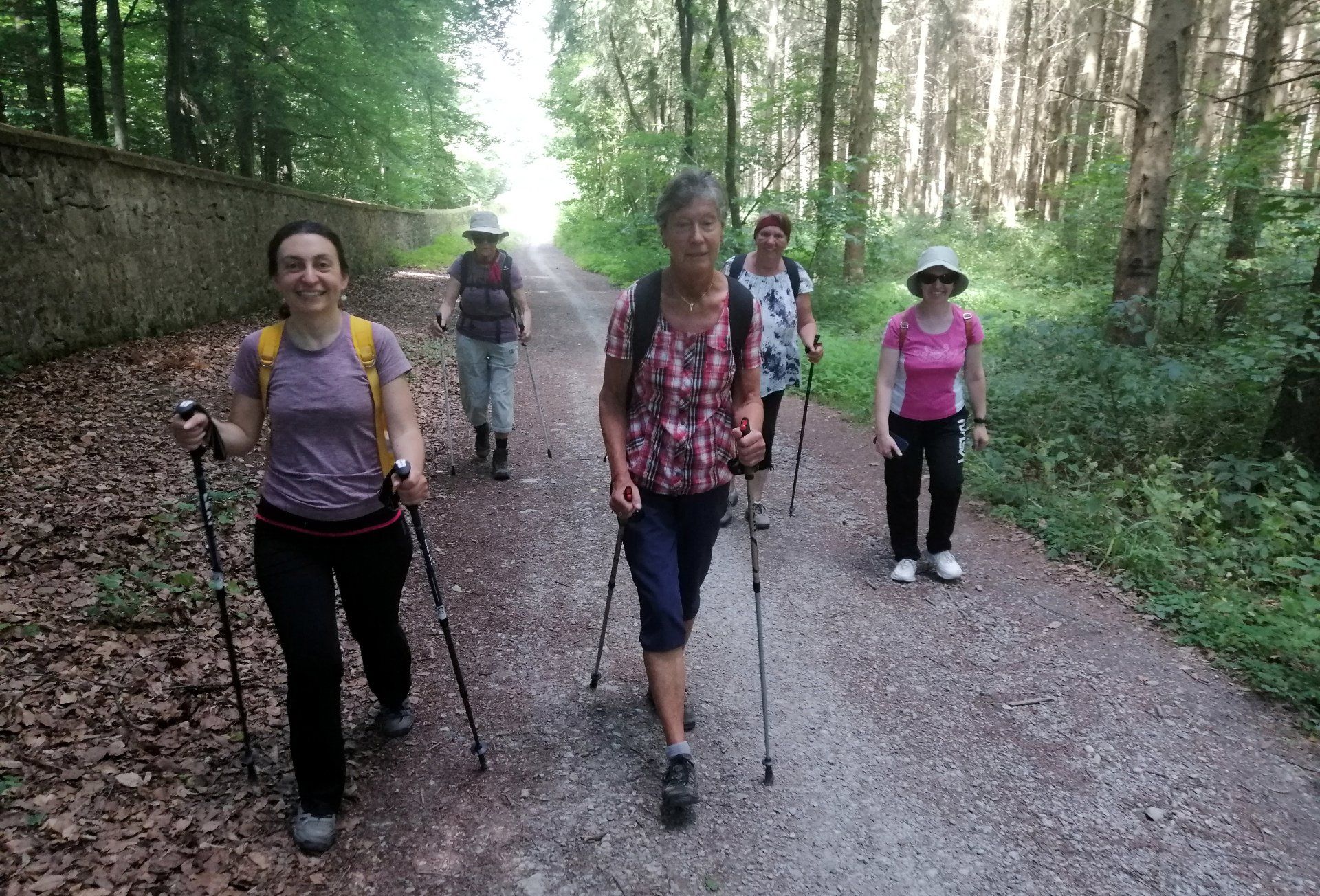 Sechs gut gelaunte Wanderer trafen sich bei hochsommerlichen Temperaturen um 10 Uhr am Bahnhof in Gersfeld und fuhren nach Begrüßung durch Vlada Niedling mit der Rhönbahn (HLB RB52) um 10.16 Uhr nach Eichenzell. Vom Bahnhof aus wanderte die Gruppe kurz vor 11 Uhr bei bereits knapp 30 °C am Schlösschen und dem Eichenzeller Wartturm vorbei die Schlossmauer entlang zu Schloss Fasanerie. Unterwegs galt es ein durch Vlada als Überraschung vorbereitetes Quiz des Eichenzeller Rhönklubs mit Fragen zur Umgebung zu lösen.