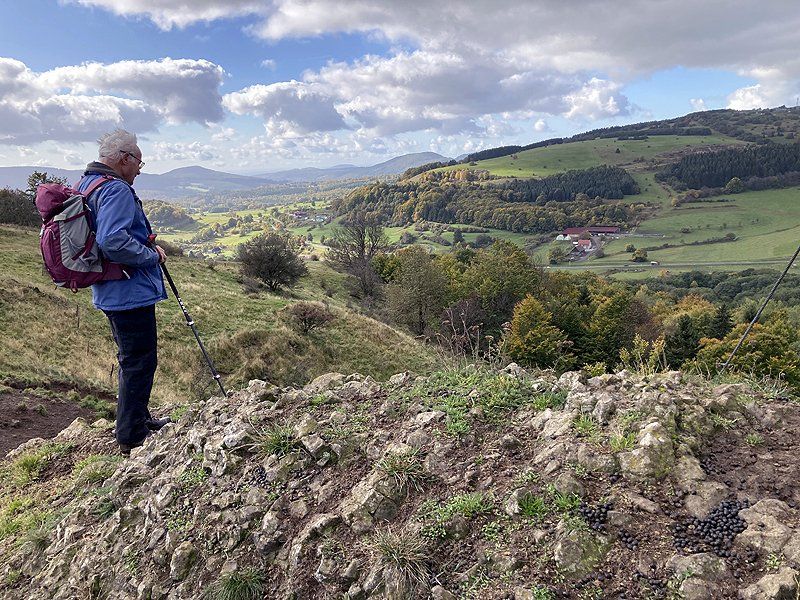 Hexenwanderung auf dem Hexenweg am 12.10.2025 Am 12. Oktober 2025 trafen wir uns um 10.00 Uhr am Gersfelder Marktplatz zu unserer diesjährigen Herbstwanderung auf dem Hexenweg bei Fischbach (Rhön). 15 Wanderer waren gekommen und in Fahrgemeinschaften fuhren wir nach Fischbach in Thüringen. Bei herrlichem Herbstwetter ging´s auf den Hexenweg. Durch wunderschöne buntgefärbte Buchenwälder wanderten wir zunächst bis zum Hexentanzplatz. Hier gab´s erstmal einen Hexentrank und dann führte uns der Weg auf schönen Wiesenwegen zurück nach Fischbach. Am Parkplatz angekommen konnten wir uns noch eine mobile Apfelpresse anschauen bevor wir weiterfuhren zum "Thüringer Rhönhaus". Nach einer verdienten Stärkung mit Kaffee, Kuchen und Deftigem ging´s dann zurück nach Gersfeld. Wanderstrecke : 6 km Wanderführerin : Renate Müller Text: Renate Müller Fotos: Susi Maul, Thomas Niedling