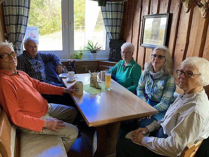 Seniorenwanderung Kreuzberg am 07. Oktober 2025 Am Gersfelder Marktplatz trafen sich um 14.00 Uhr 8 Wanderer zu der Seniorenwanderung Kreuzberg. Im Vorfeld hatten sich viele Interessierte wieder abgemeldet. Das Wetter war sehr wolkenverhangen und diesig. Wir fuhren zum Kreuzberg auf den Parkplatz. Hier waren wir in den Wolken. Nach einer kurzen Besichtigung der Kirche drehten wir eine kleine Runde bis zur Kreuzigungsgruppe. Treppab ging es zum Kloster. Dort kehrten wir ein. Alle waren guter Laune und genossen Bier, Kaffee, Käsebrot und Kuchen. Ein sehr schöner Ausflug trotz der mangelnden Sicht. Um 17.30 Uhr fuhren wir wieder nach Hause. Strecke: ca. 3 km Wanderführerin: Margit Trittin Text und Fotos: Margit Trittin