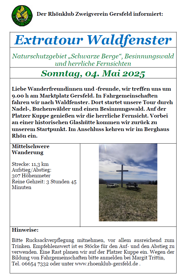Wanderung Extratour Waldfenster, Sonntag 4. Mai 2025
