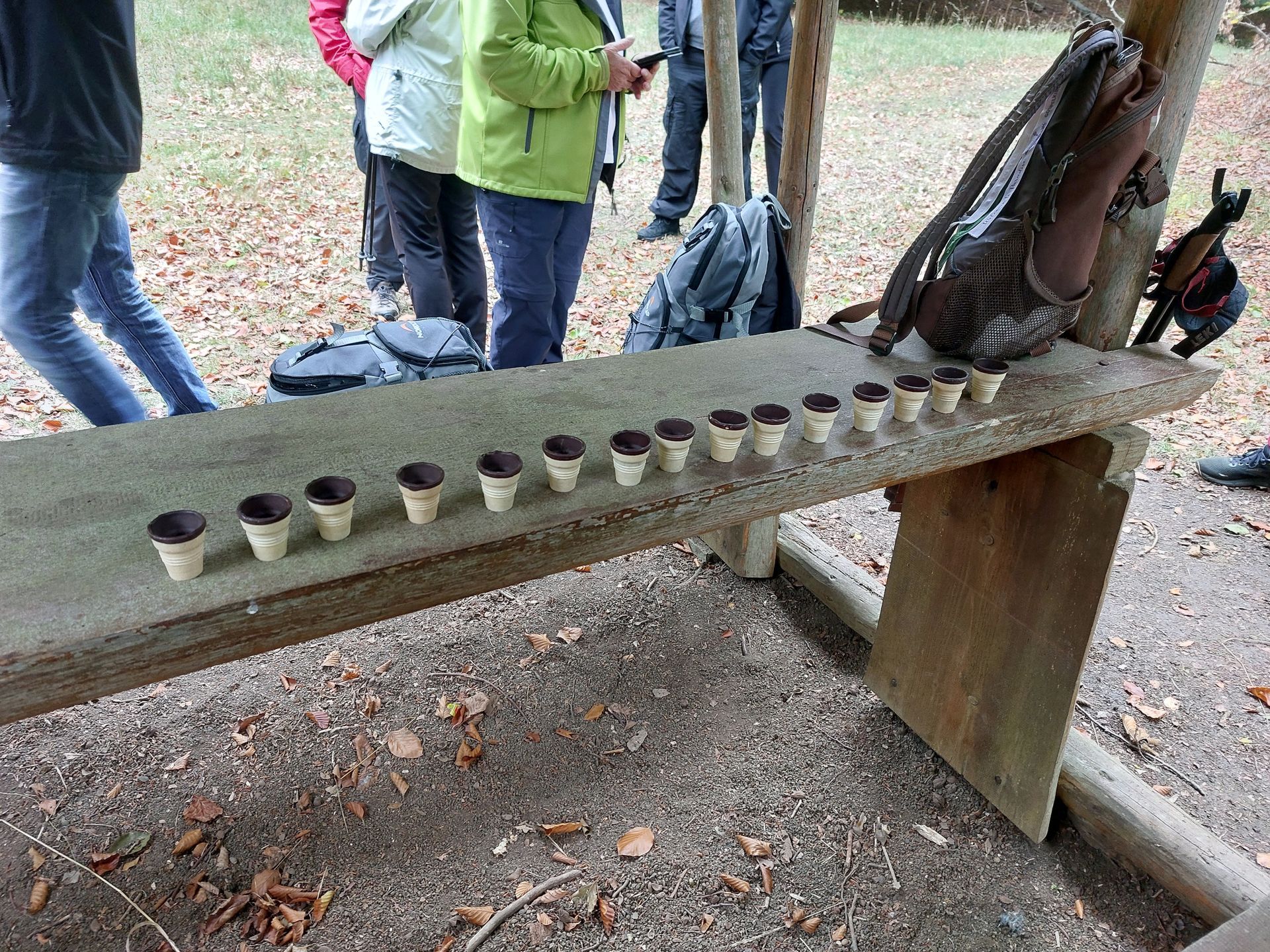 15 Wanderer waren gekommen und in Fahrgemeinschaften fuhren wir nach Fischbach in Thüringen. Bei herrlichem Herbstwetter ging´s auf den Hexenweg. Durch wunderschöne buntgefärbte Buchenwälder wanderten wir zunächst bis zum Hexentanzplatz. Hier gab´s erstmal einen Hexentrank und dann führte uns der Weg auf schönen Wiesenwegen zurück nach Fischbach. Am Parkplatz angekommen konnten wir uns noch eine mobile Apfelpresse anschauen bevor wir weiterfuhren zum "Thüringer Rhönhaus".
