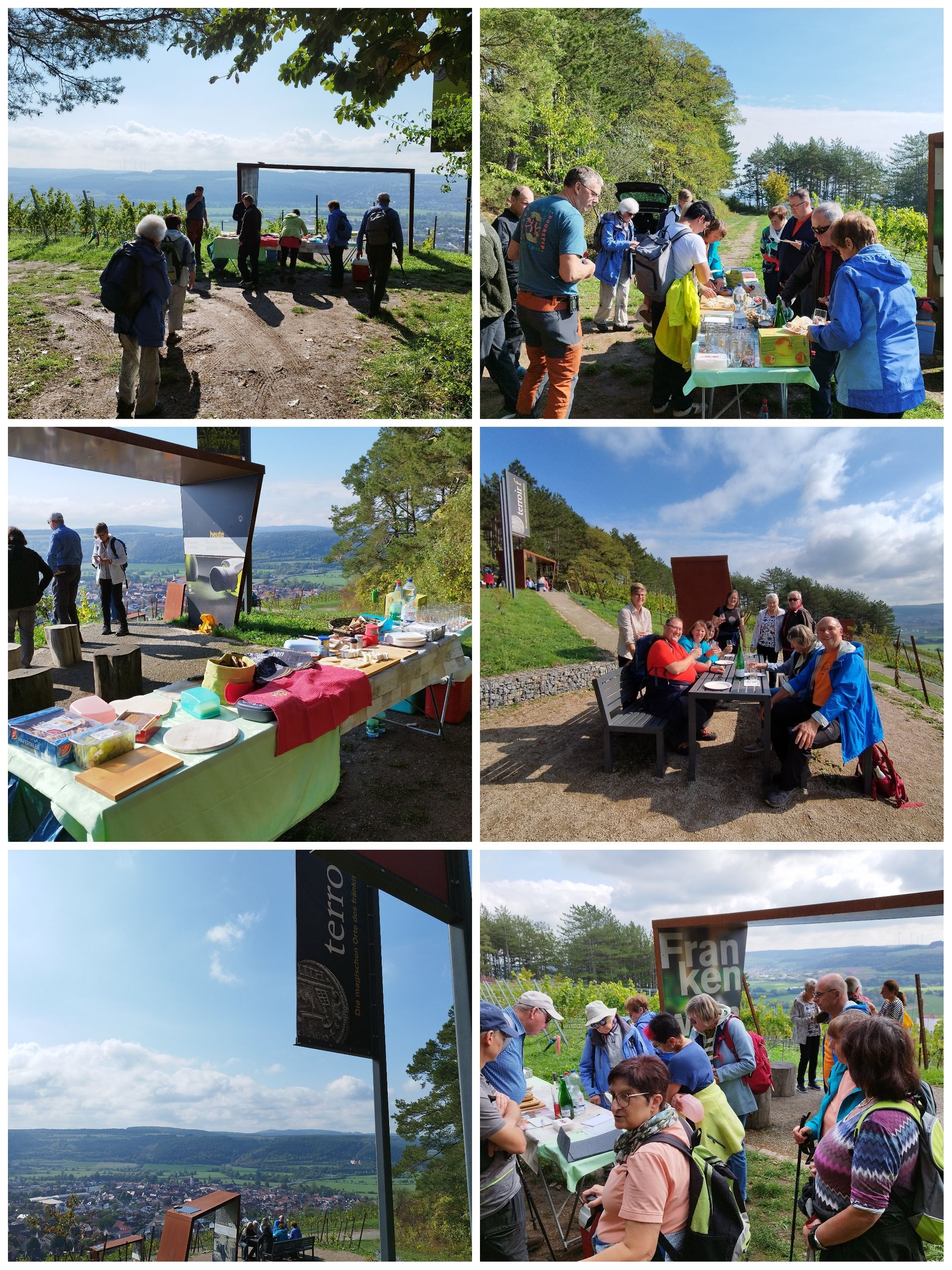Nach kurzer Wanderung vom Parkplatz aus erreichten wir das „terroir f“ von Hammelburg – einen der magischen Orte des Weinlands Franken – mit geschichtlichen Informationen zum Frankenwein und herrlicher Aussicht auf die Stadt Hammelburg.